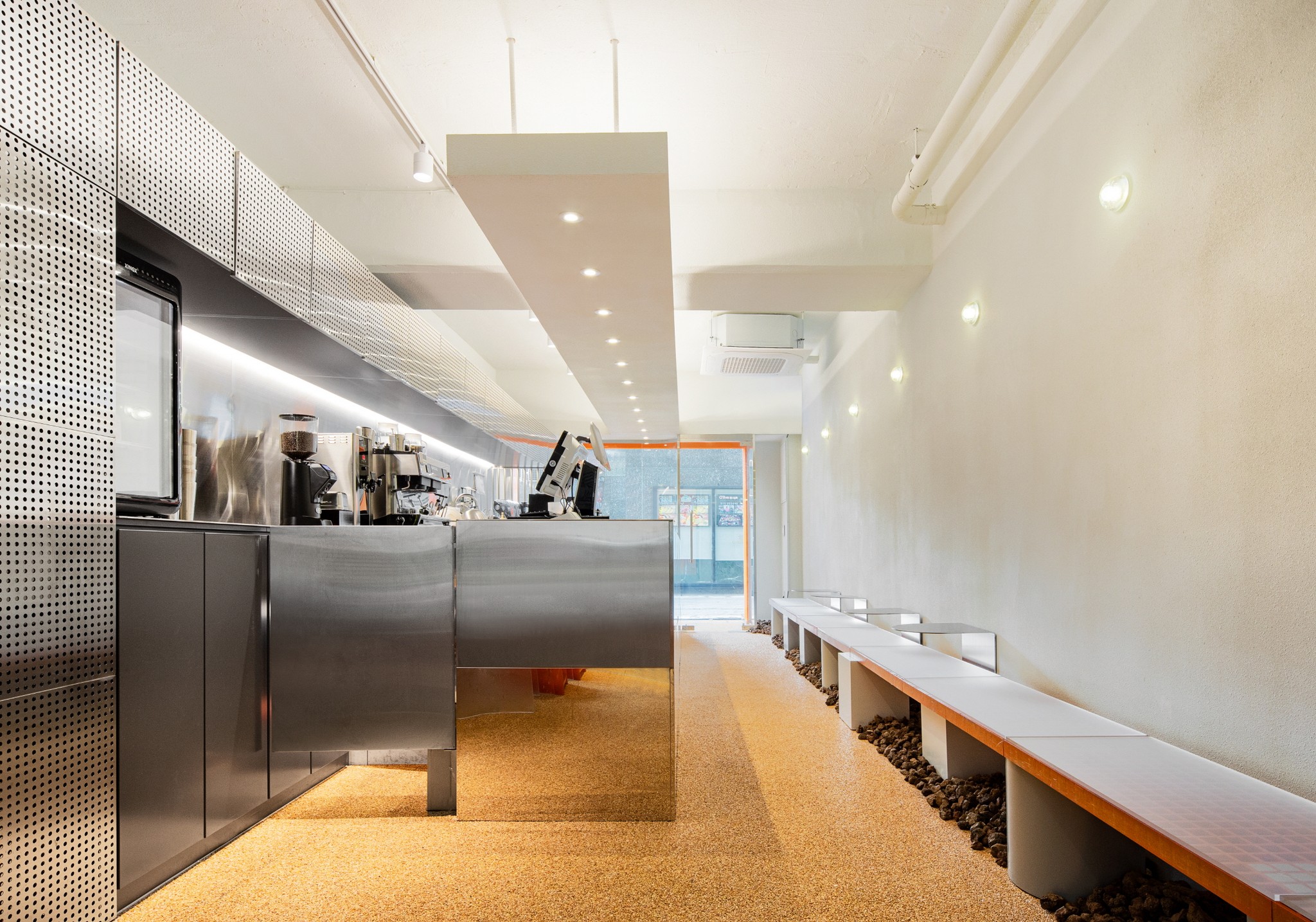 서로 다른 재료의 성질이 겹쳐지며, 공간은 하나의 인상으로 인식된다. 차가움과 따뜻함이 공존하는 상태 속에서 공간 전체로 확장된다.