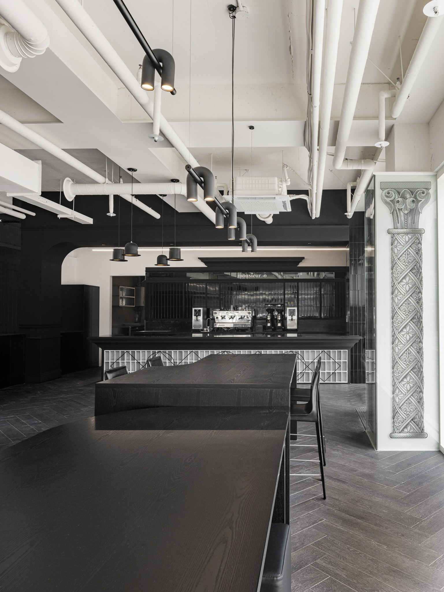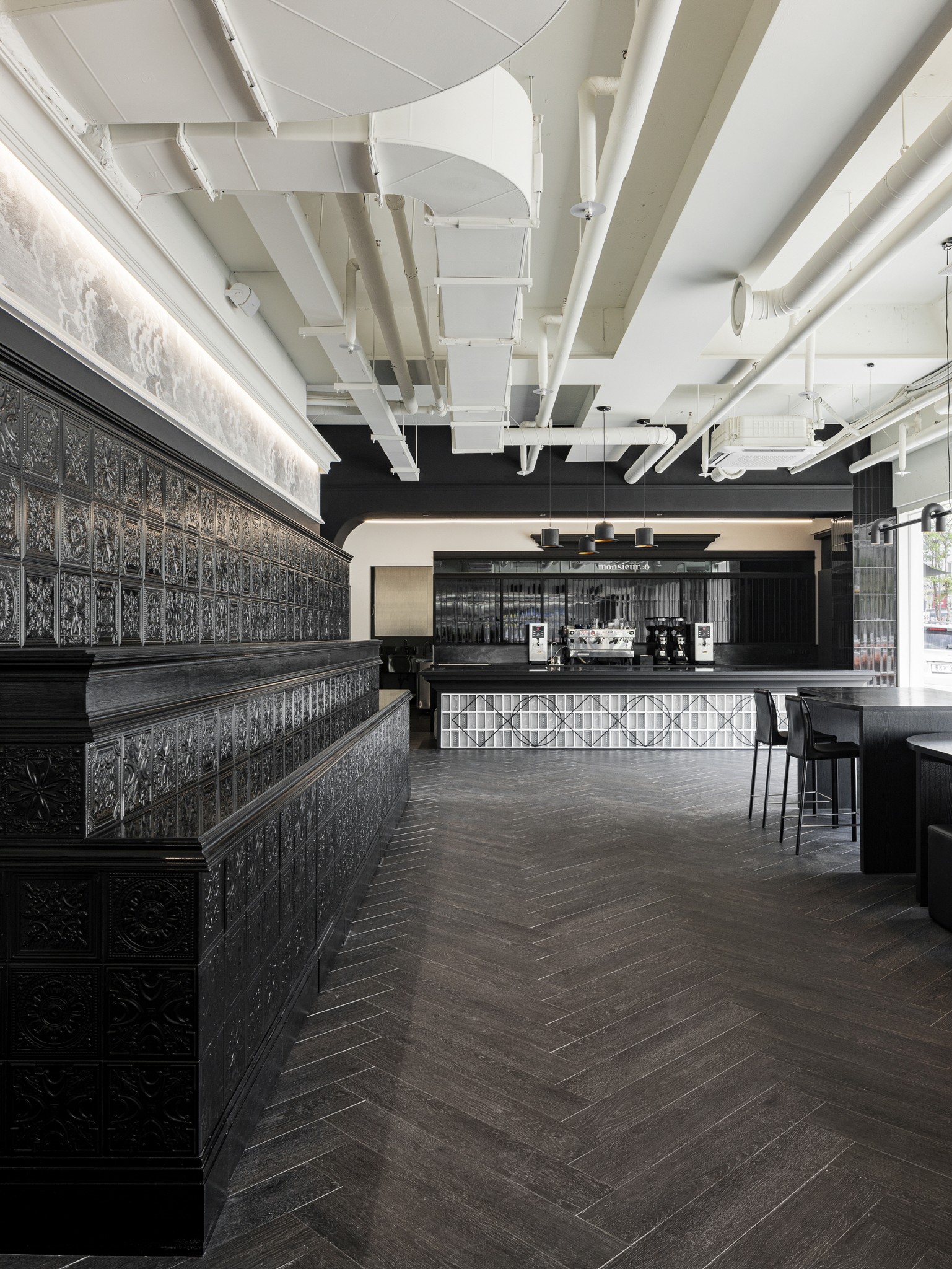 Monsieur.o는 고전적인 장식 언어를 현대적인 공간 안에 재배치한 프로젝트다.