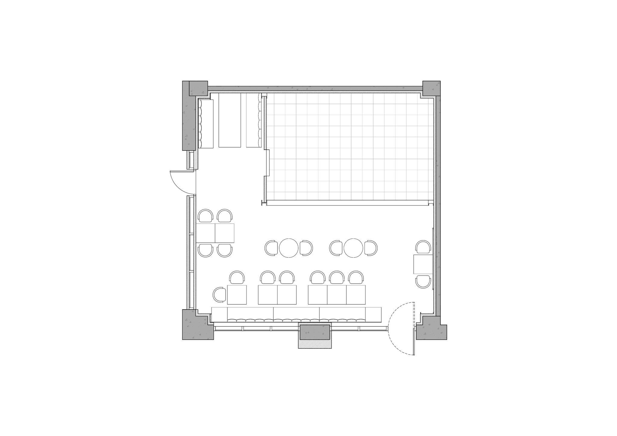 디트로이트 스타일 피자는 자동차 공장에서 부품을 보관하던 철판에서 비롯된 음식으로, 산업적 환경과 밀접하게 연결되어 있다. 이 프로젝트는 이러한 배경을 공간 안에서 물리적으로 드러내는 방식으로 구성된다.