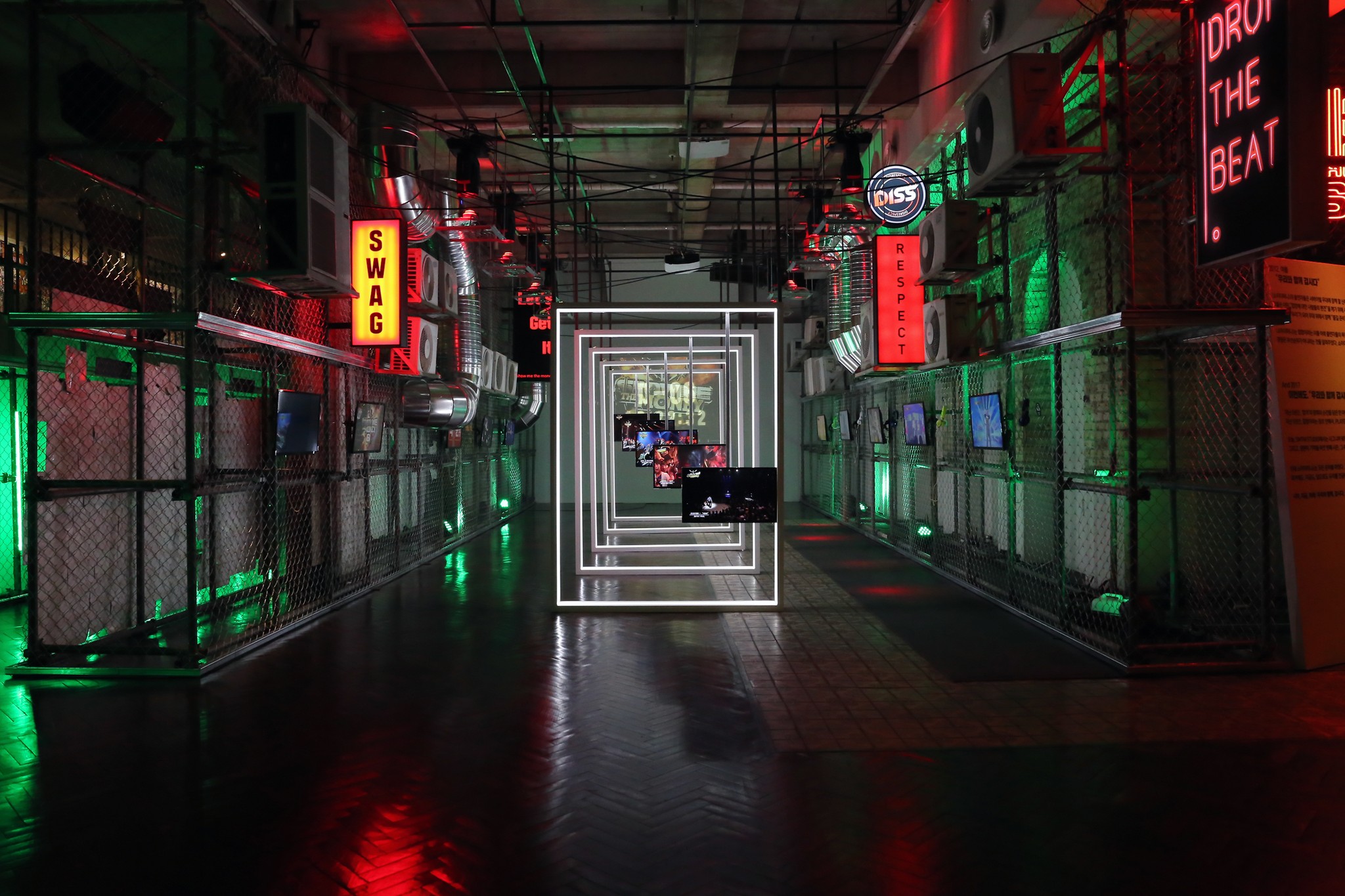 Rather than following a conventional exhibition format, the space is organized around the way content is encountered within an urban street context. Elements typically found on building exteriors—air conditioning units, exposed piping, ducts, electrical wiring, and signage—are brought into the interior, transforming fragments of the street into the backdrop of the space.