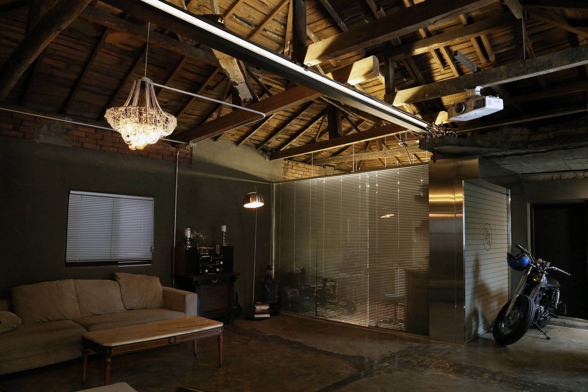 기존의 낡은 구옥은 공간의 배경으로 유지되었으며, 박공 형태의 천장을 중심으로 조명이 구성되었다. 빛은 천장의 구조를 따라 흐르며 공간의 중심을 드러내고, 내부의 분위기를 하나의 장면으로 묶는다.